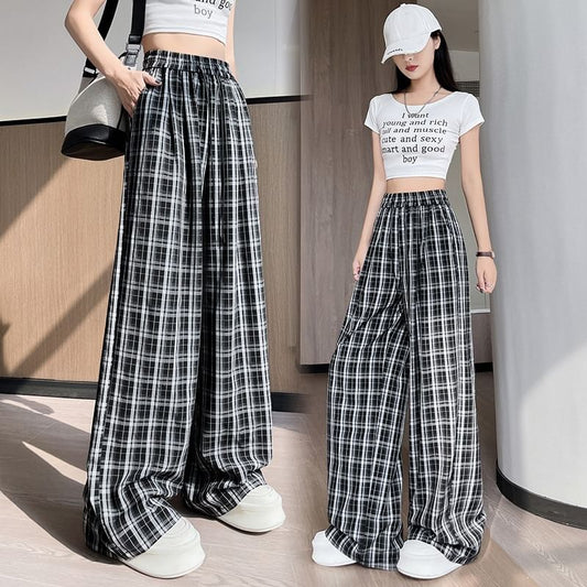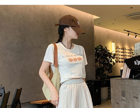 Ensemble : T-shirt court à manches courtes et col rond + pantalon large à taille élastique