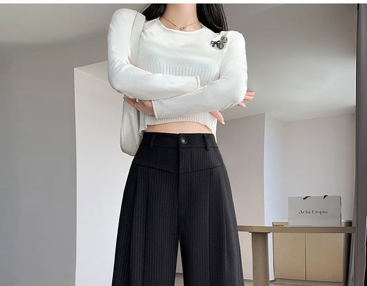 Ensemble : haut plissé uni à manches courtes et col montant + pantalon large à taille élastique