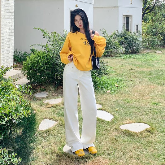 Leg Suit Rise High Pants Washed Wide Plain Designs) (Various