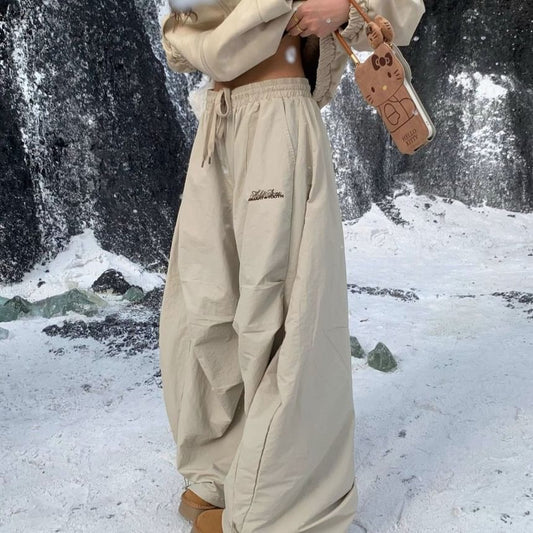 Low Rise Lettering Embroidered Loose-Fit Wide-Leg Sweatpants