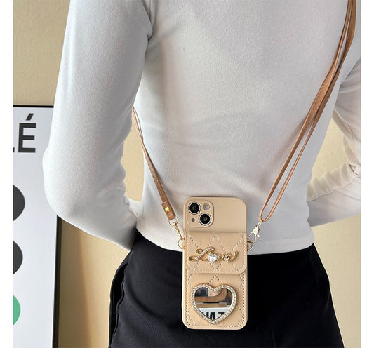 Heart Coin Purse Crossbody Strap Phone Case - iPhone 14 Pro Max / 14 Pro / 14 Max / 14 / 13 Pro Max / 13 Pro / 13 / 13 mini / 12 Pro Max / 12 Pro / 12 / 12 mini / 11 Pro Max / 11 Pro / 11 / SE / XS Max / XS / XR / X / 8 / 8 Plus / 7 / 7 Plus