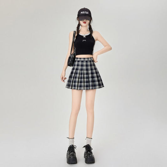 High Rise Plaid Pleated Mini A-Line Skirt