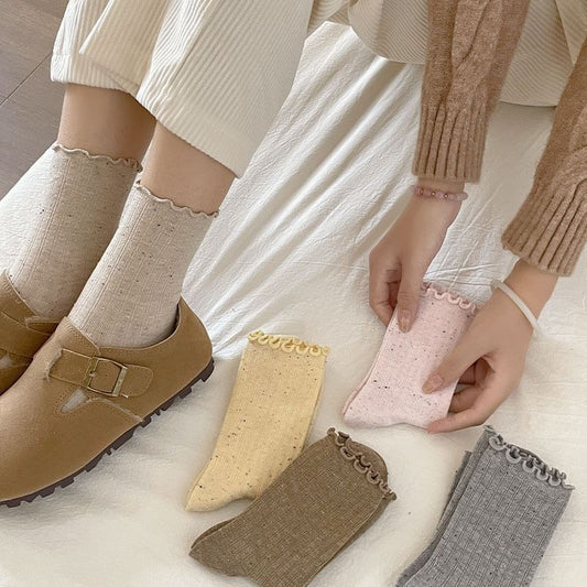 High Waist Lace-Trim Loose-Fit Wide-Leg Pants