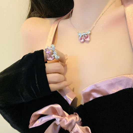 Cherry Rhinestone Pendant Alloy Necklace / Open Ring / Stud Earring