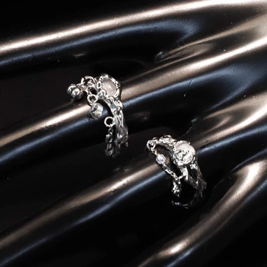 Rose Enamel Alloy Open Ring / Wavy Alloy Open Ring