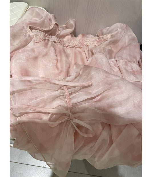 Ensemble robe à lacets avec t-shirt à manches bouffantes Kawaii