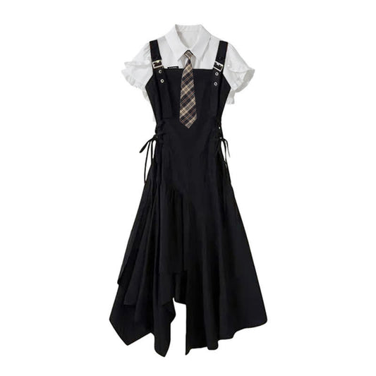 T-shirt polo chic à poches et nœuds Robe à bretelles à lacets irréguliers
