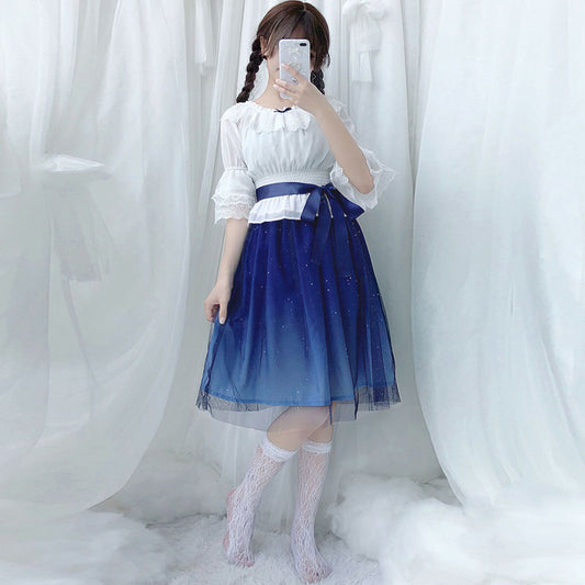 Robe Lolita Kawaii avec nœud et ourlet en dentelle
