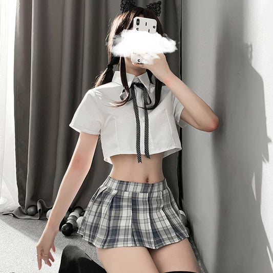 Jolie nuisette, bas, lingerie, robe à carreaux