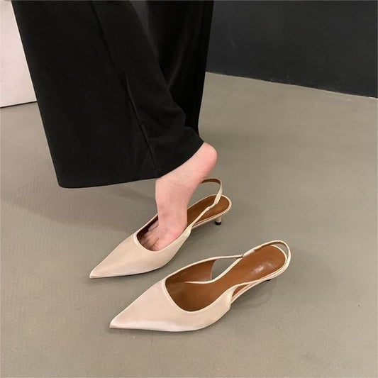 Pointed Toe Satin Kitten Heel Pumps