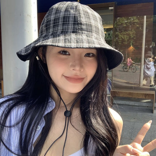 Long-Sleeve Henley Plaid Pocket Front Pleated Hem Mini Shirt Dress
