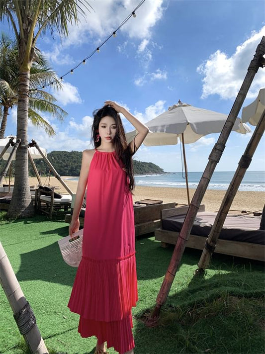 Plain Sleeveless Dress Cutout Maxi A-Line