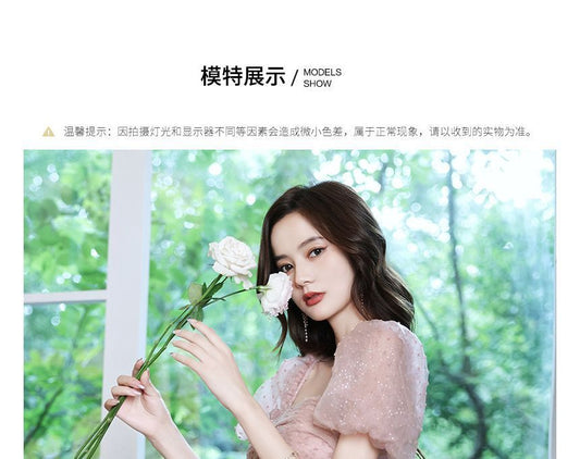 Puff-Sleeve Embellished Bow A-Line Prom Dress (Various Designs)