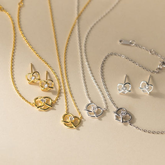 Heart Rhinestone Sterling Silver Stud Earring / Necklace / Bracelet