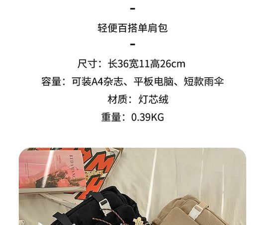 Logo Applique PVC Panel Corduroy Messenger Bag