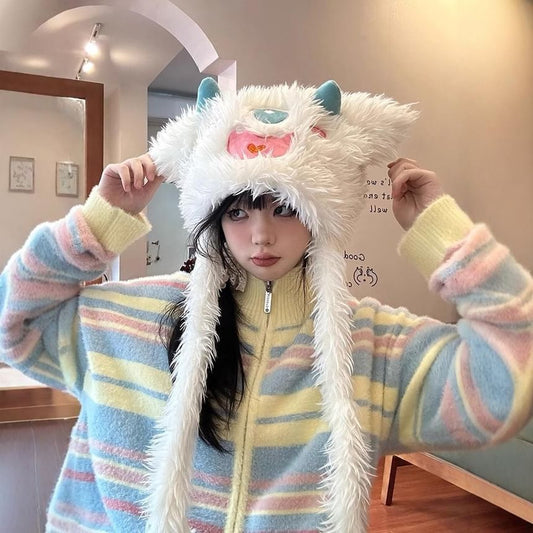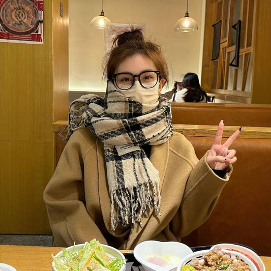 Collared Plaid Fleece-Lined Button Shacket / Plain Zip Hoodie / Elastic Waist Flared Sweatpants