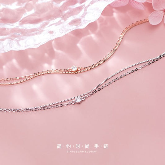Rhinestone Layered S925 Sterling Silver Bracelet