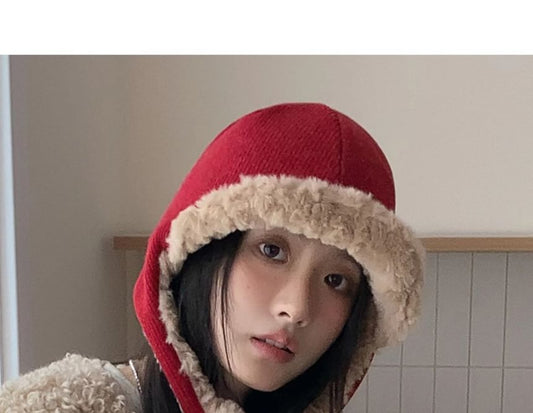 Plain Fleece-Lined Zip Hoodie / Long Sleeve Halter Plain Mock Two Piece T-Shirt / Drawstring Waist Striped Wide Leg Pants