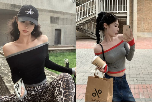 Long Sleeve Off Shoulder Plain Lace Up Sweatshirt