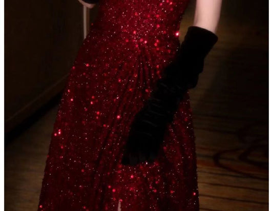 Off-Shoulder Sequin Slit A-Line Evening Gown