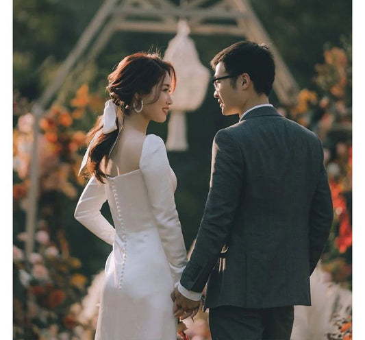 Long-Sleeve Square Neck Plain A-Line Wedding Gown