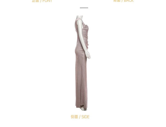 Sleeveless Square Neck Plain Glitter Sheath Evening Gown