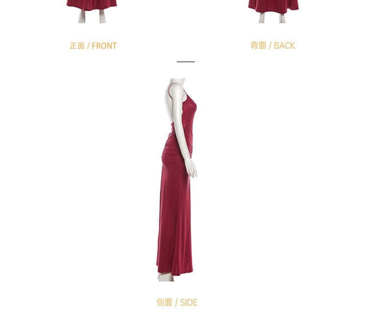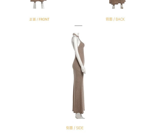 Halter Neck Plain Maxi Sheath Evening Gown