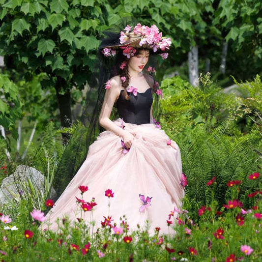 Strapless Two Tone Butterfly Accent Ball Gown