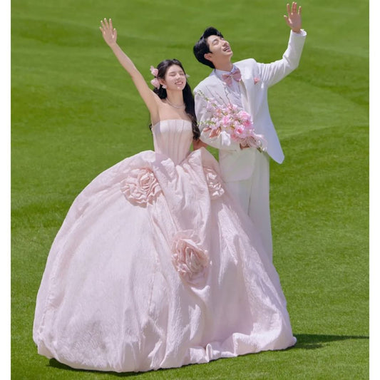 Strapless Plain Flower Accent Ball Gown