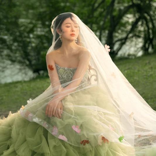 Strapless Ruffle Tiered Trained Ball Gown