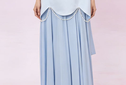Long-Sleeve Off-Shoulder Plain Faux Pearl Accent Satin Wedding Ball Gown (Various Designs)