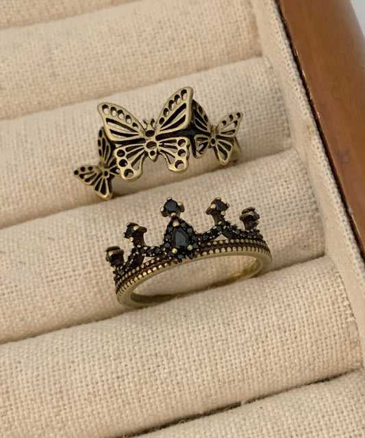 Rings Crown Hollow Piece Gold Two Set Ancient Out Fine Metal Butterfly