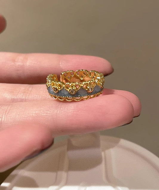 Set Gold Rings Sterling Open Overgild Gourds Silver Lace Retro Two-Piece