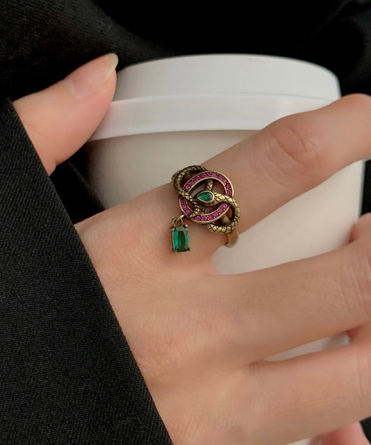 Open Gold Rings Small Zircon Vintage Ancient Colorblock Snake