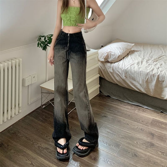 Waist Jeans High Washed Gradient Loose Fit