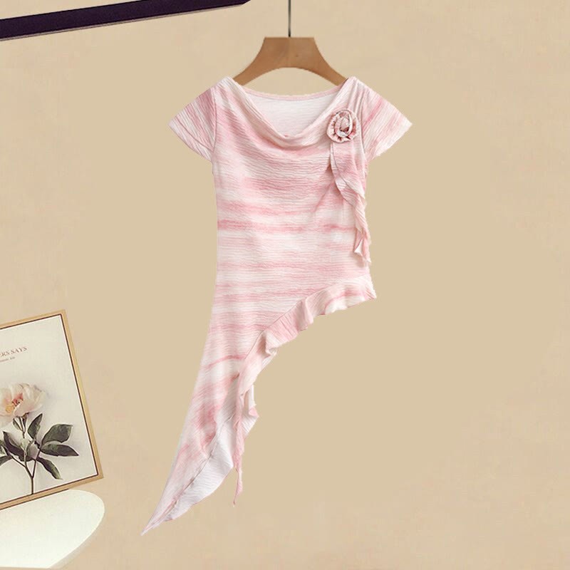 Skirt Waist Print Sweet Pleated High T-Shirt