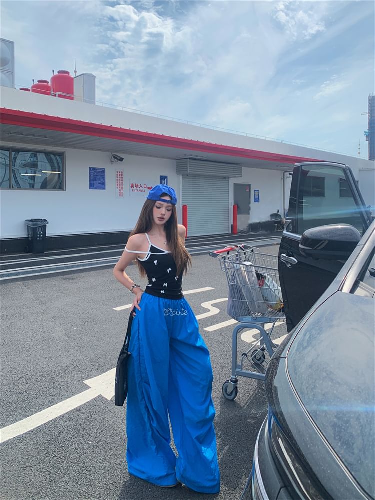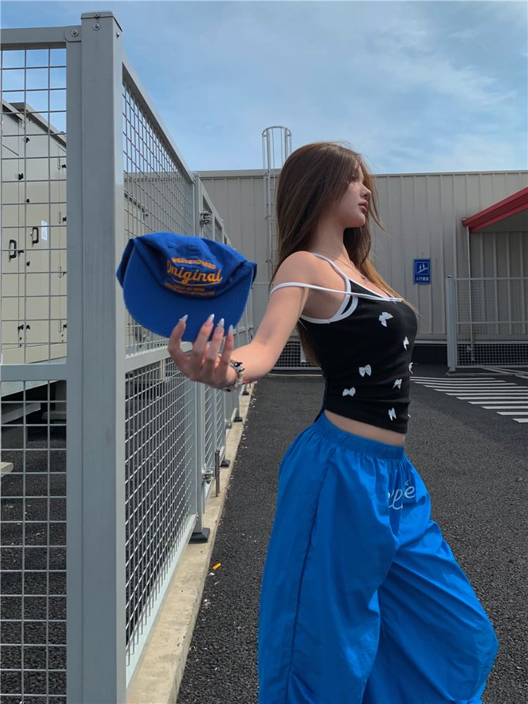 Bow Cami Top / Elastic Waist Plain Wide Leg Pants