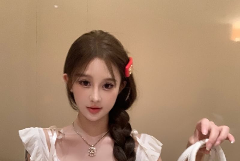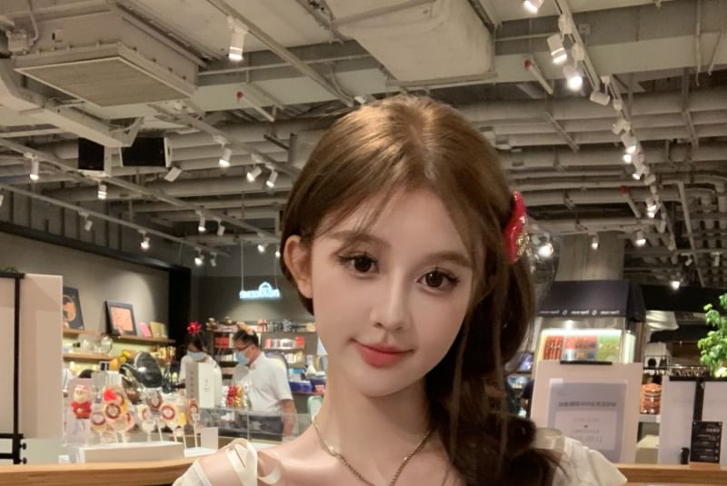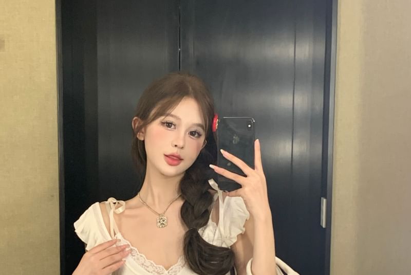Cap-Sleeve Scoop Neck Plain Ruffle Cropped Tee / V-Neck Lace Trim Cami Top