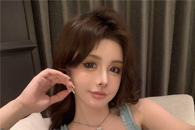 Square Neck Rhinestone Frill Trim Slim Fit Tank Top