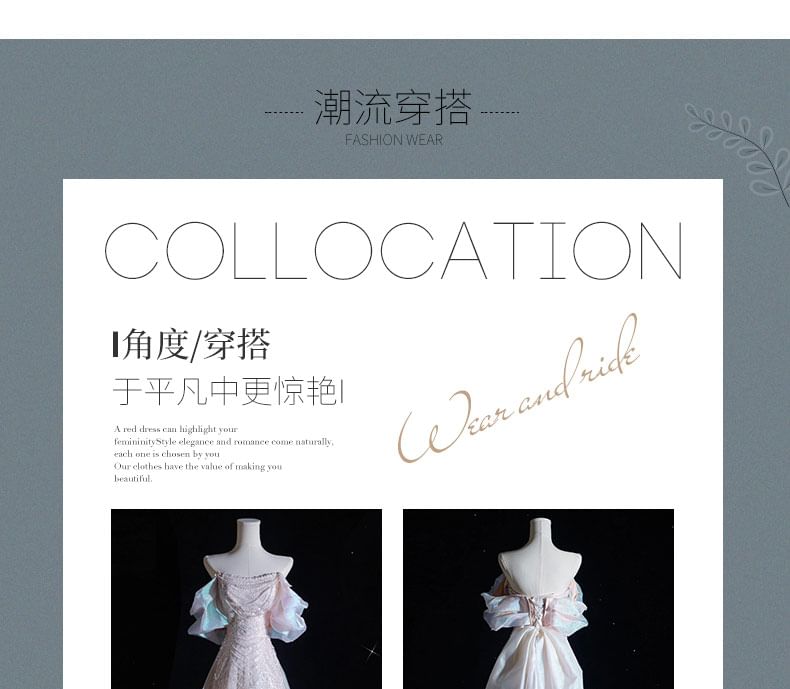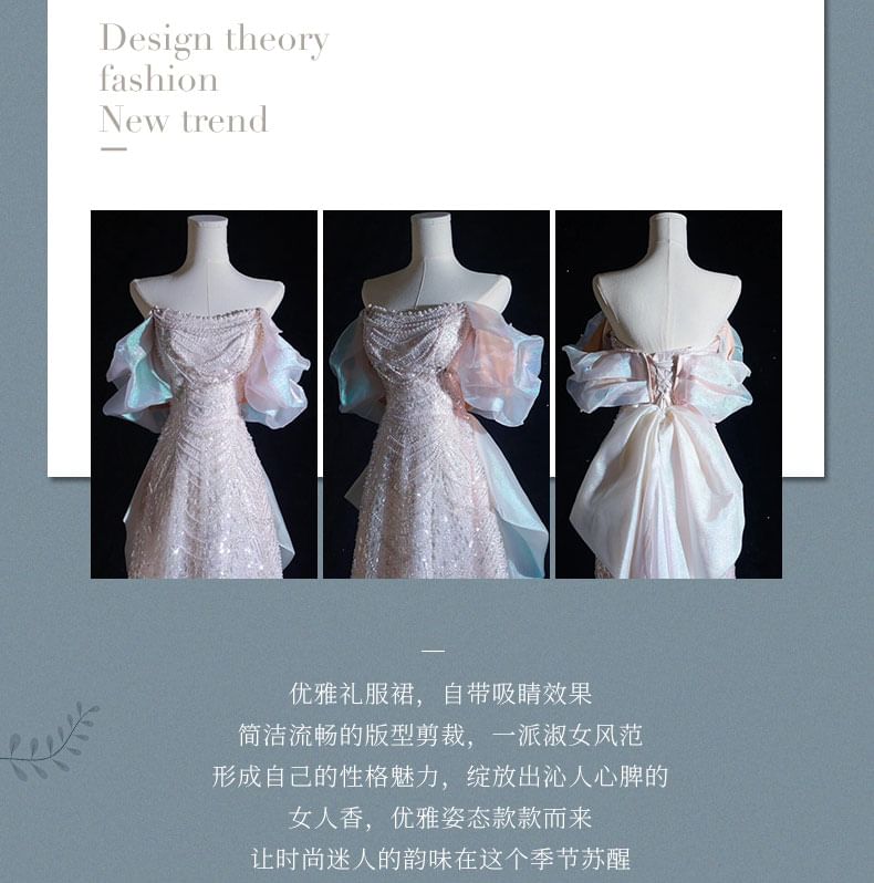 Gown Evening A-Line Off-Shoulder Sequin Beaded