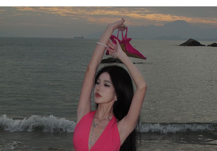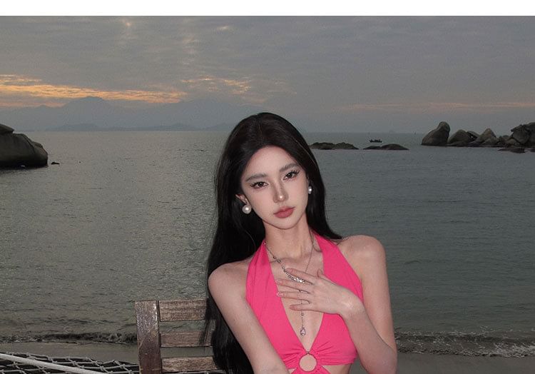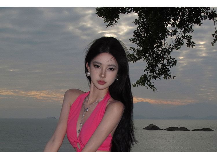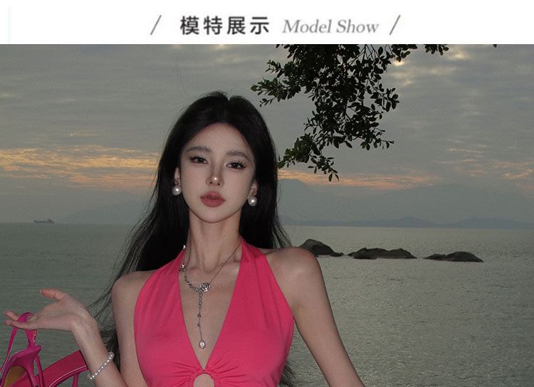 Halter Neck Cutout Plain Midi Bodycon Dress