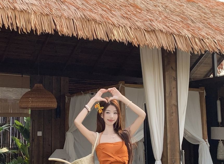 Halter Plain Knot Crop Slim Fit Cami Top / Mid Rise Tie Dye Maxi A-Line Wrap Skirt