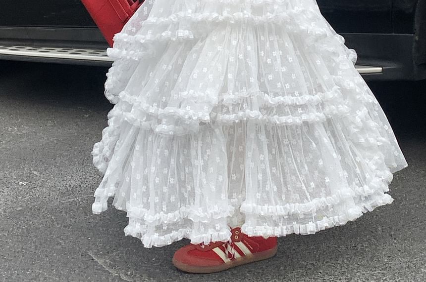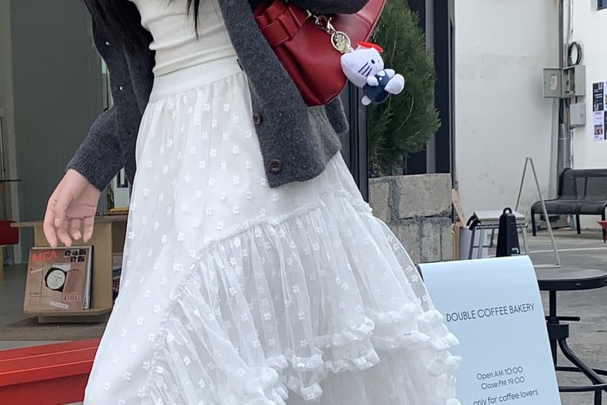 High Rise Floral Ruffle Asymmetrical Maxi A-Line Skirt