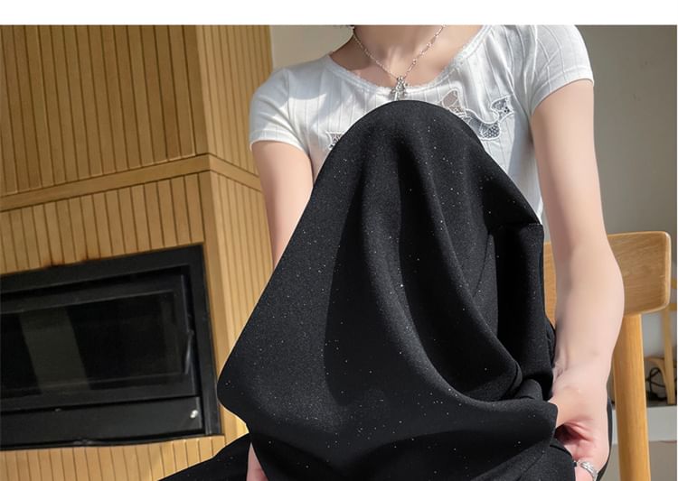 High Rise Glitter Lace Panel Wide Leg Slacks (Various Designs)