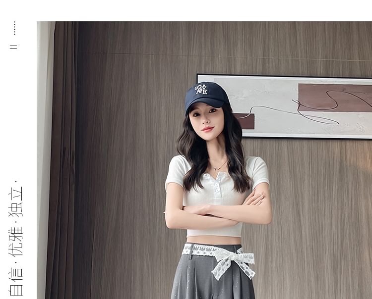 Skirt Waist Print Sweet Pleated High T-Shirt