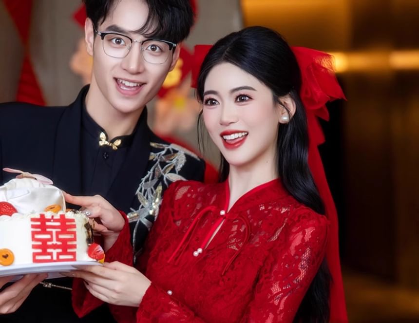 Set: Long-Sleeve Button-Up Frog Buttoned Lace Top + High Waist Midi Pencil Skirt