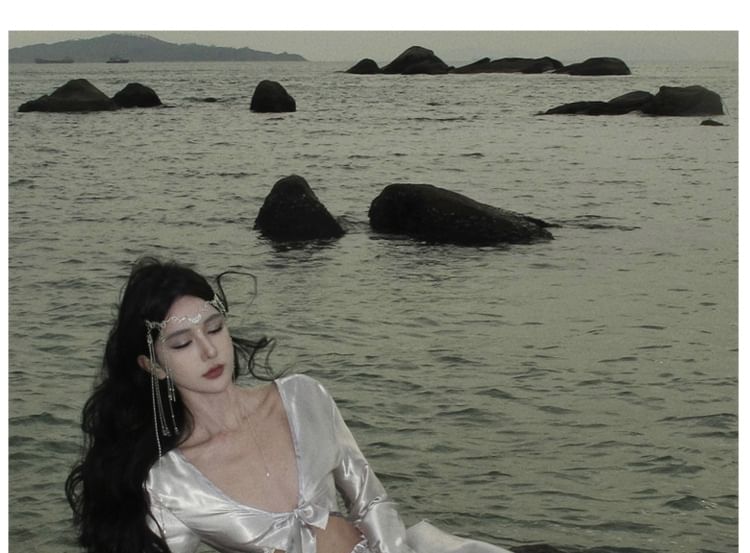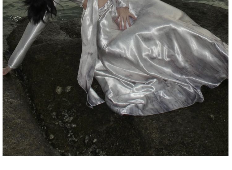 Long-Sleeve V-Neck Cutout Maxi A-Line Dress