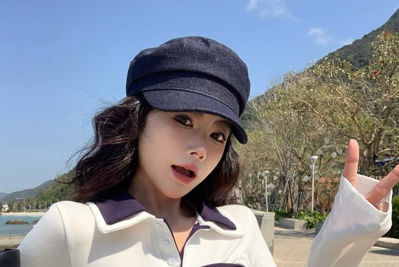 Long-Sleeve Collar Plain Contrast Trim Tee / Tie-Front Tube Top / High Waist Mini Pencil Skirt