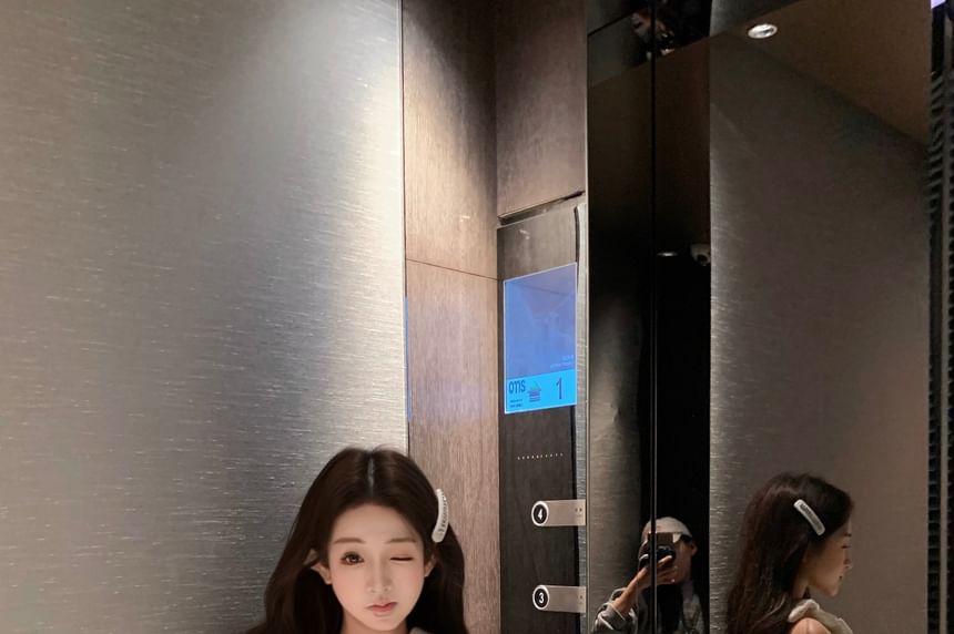 Plain Bow Knit Camisole Top / High Waist Plaid Shorts