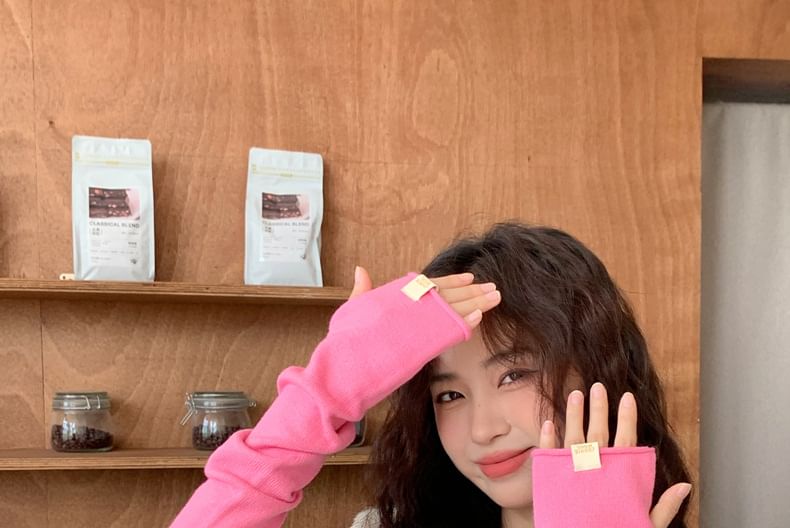 Plain Fingerless Knit Long Gloves
